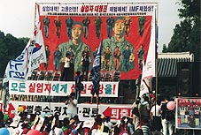 Anfang September fand in Südkoreas Hauptstadt Seoul eine internationale Konferenz gegen Neoliberalismus und IWF-Diktat (Internationaler Währungsfond) statt. Aus 15 Ländern waren ca. 35 Gewerkschafter und Umweltschützer gekommen, um mit südkoreanischen Aktivisten der verschiedenen sozialen Bewegungen zu diskutieren, zu feiern und zu demonstrieren. Eingeladen hatte der Gewerkschaftsdachverband KCTU (Korean Confederation of Trade Unions), die Jugend-Umweltorganisation KEY und PICIS, eine Gruppe, die sich die neuen Medien zu Nutze macht, um einen linken internationalen Informationsaustausch zu organisieren. Fünf Tage lang ging es um Themen wie Migranten in Ost- und Südostasien, die in dieser Region fast ausschließlich Wanderarbeiter sind, Arbeitslosigkeit, Umweltschutz, Gesundheit am Arbeitsplatz und den Aufbau internationaler Widerstandsnetze gegen die Politik des IWF und der "transnationalen Konzerne".